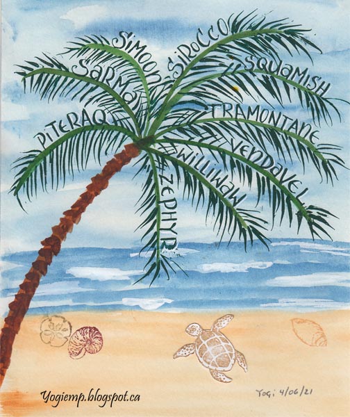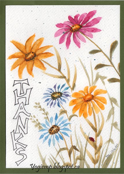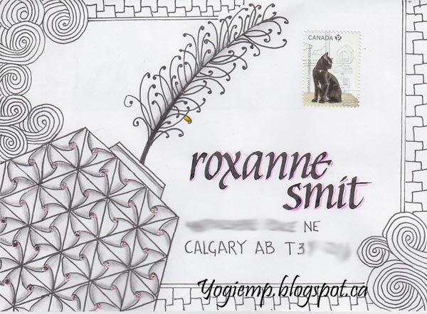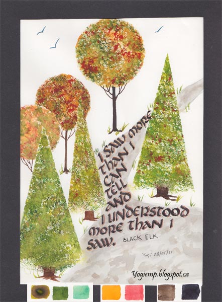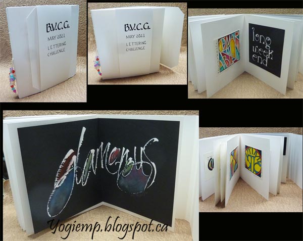 I did the exemplar in my Canson Mixed Media book using various medias - ZIG Writer for outlines and shadow, w/c to paint each letter in various shades of ochre/browns etc, then detailed with various gel and metallic pens, finally adding the blue colored shaded area with a Prisma Colored pencil. Love this style of lettering with all the doodling etc... right up my alley.