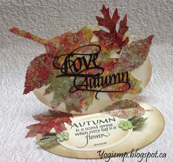 Wanted to make a giant leaf type card... and one of the challenges calls for an oval shape... Still having fun with alcohol inks...